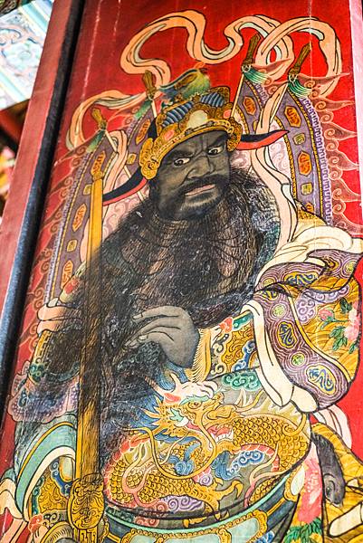 除此之外,北極殿中有著名的麗水師(潘麗水師傅)的門神及壁畫作品