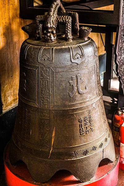 在此神桌旁邊還有不容錯過的古物:全台唯一的姑蘇古鐘。張繼的楓橋夜泊大家最耳熟能詳的一句便是「姑蘇城外寒山寺,夜半鐘聲到客船。」拜此詩所賜,姑蘇鐘聲迴盪千年萬里。而在台灣也有這麼唯一的一口姑蘇鐘,是道光年間府城鹽商,也是吳園創辦人的吳尚新先生遠至姑蘇訂製。但目前鐘體損壞,已退役作為展示。