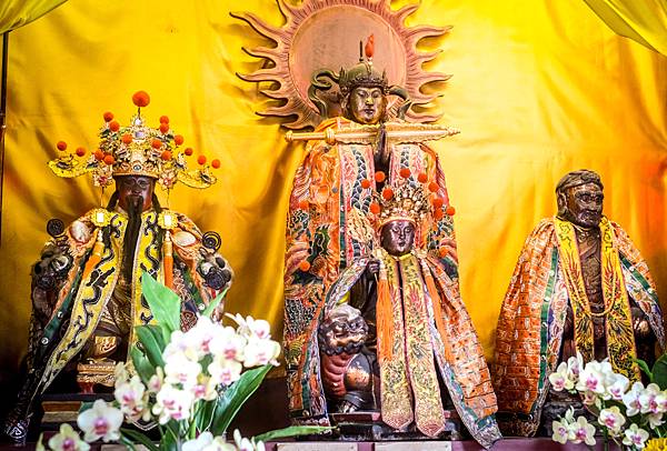 中間的二上帝神像,是350年前隨著鄭成功登台的玄天上帝神像,也是最早鎮守台灣的玄天上帝。